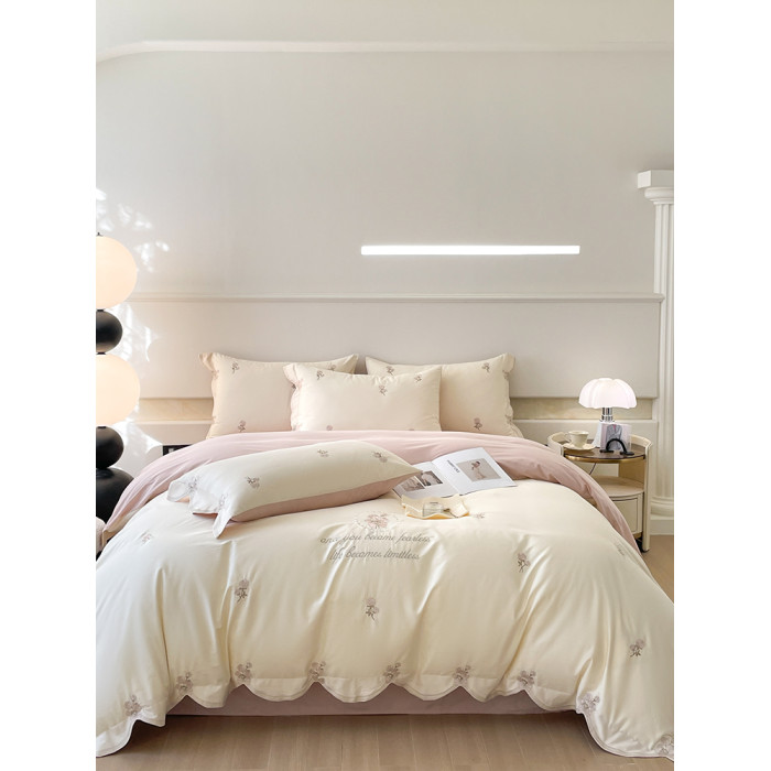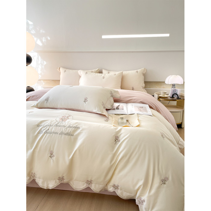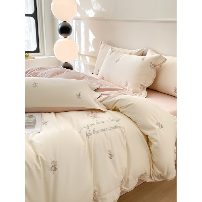 輕奢高級感100%全棉被套單件純色2米床單被罩純棉四件套床上用品