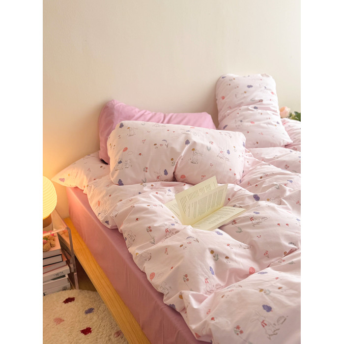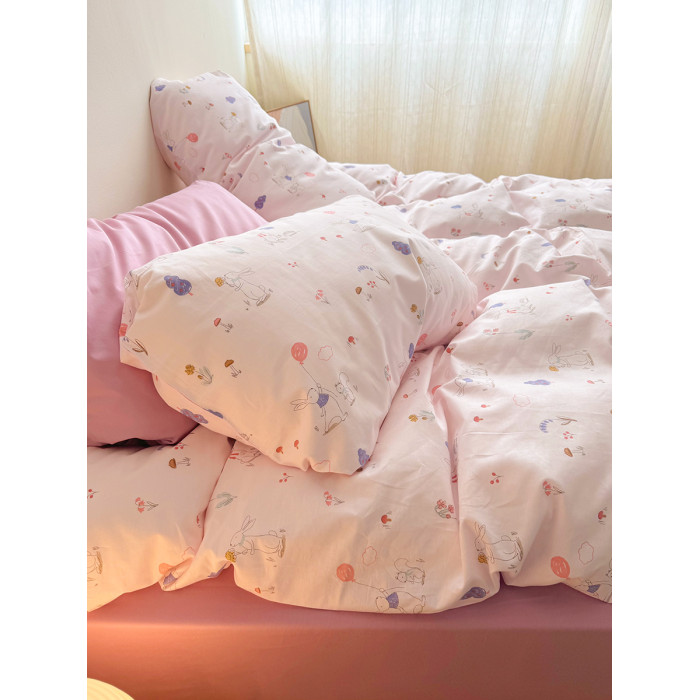 真的軟!可愛卡通兔子100全棉被套單件學生床上四件套被罩1.8m床笠