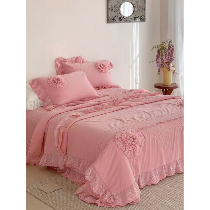 玫紅色 玉粉 床蓋三件套