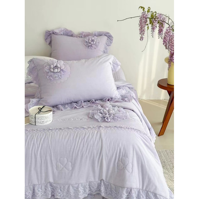 淺紫色 床蓋三件套
