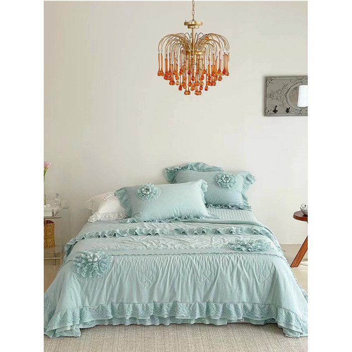 淺綠色 藍綠色 床蓋三件套