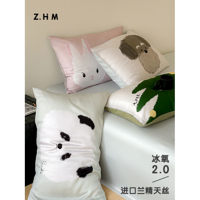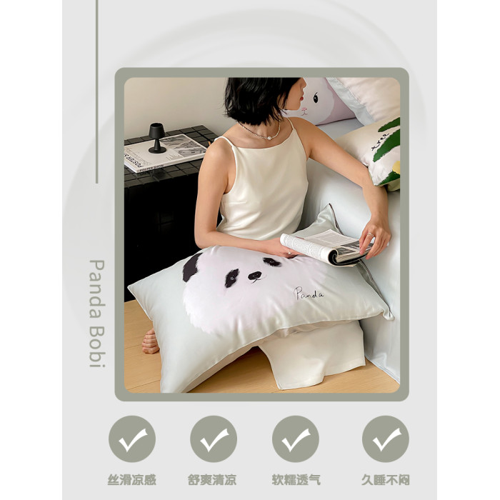 2025年新款蘭精天絲枕套48cmx74cm冰絲滑枕頭套夏季單個整套熊貓