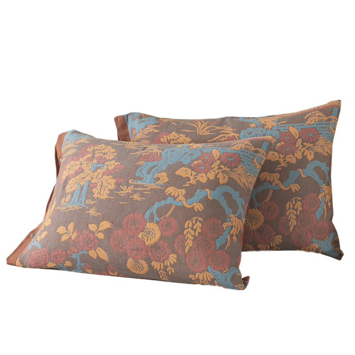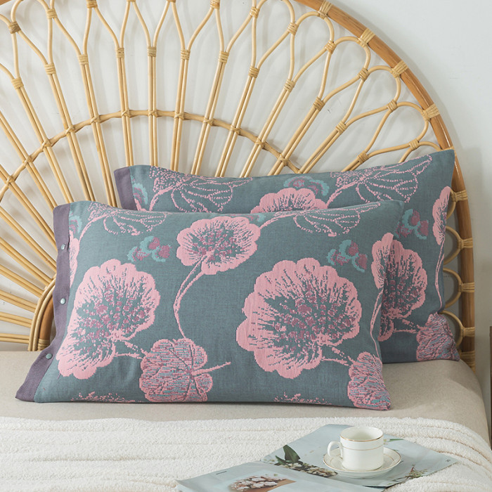 2024新款純棉紗布枕套一對裝全包按釦枕頭套家用隔頭油枕巾一體套