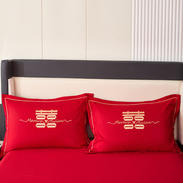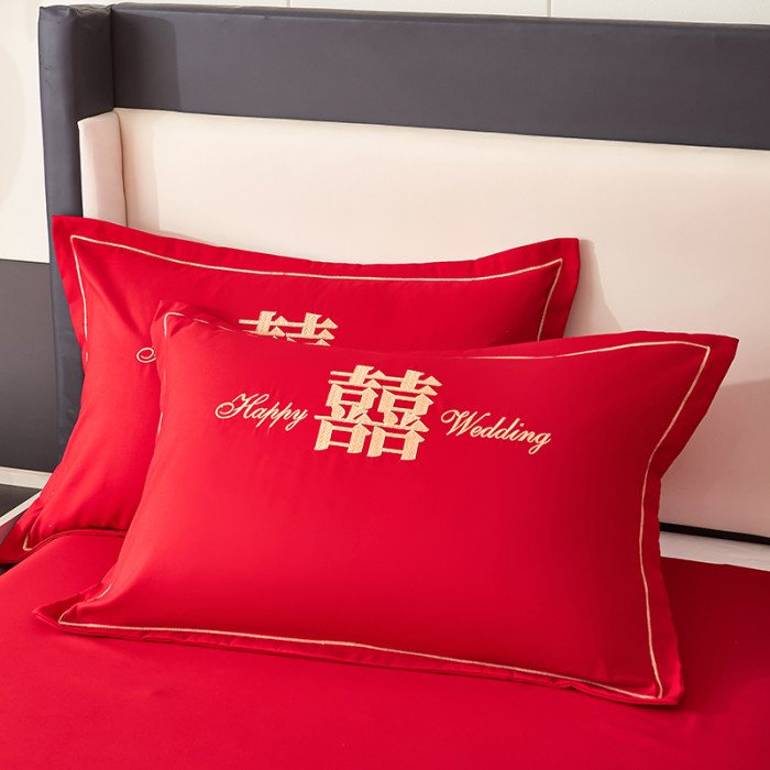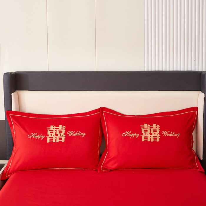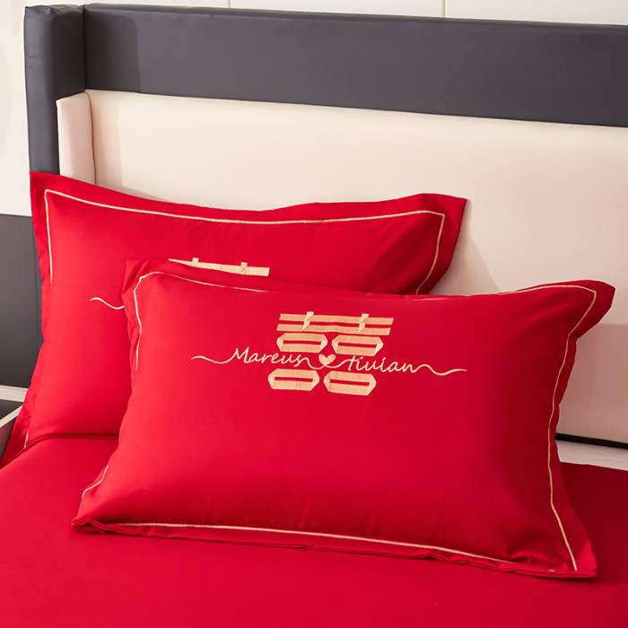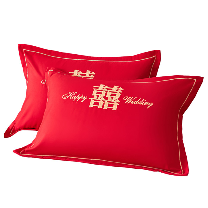 大紅色婚慶枕套一對裝結婚新婚雙喜枕頭套女方陪嫁婚禮長絨棉枕巾