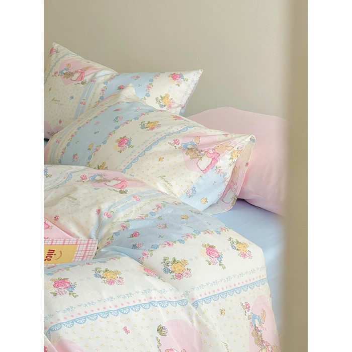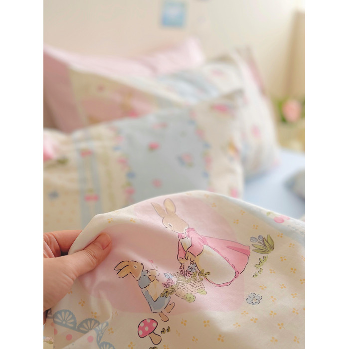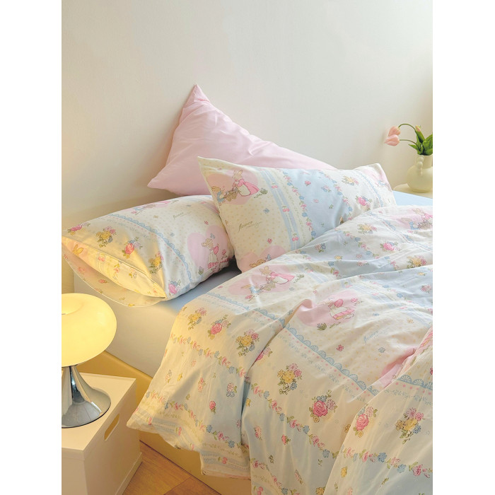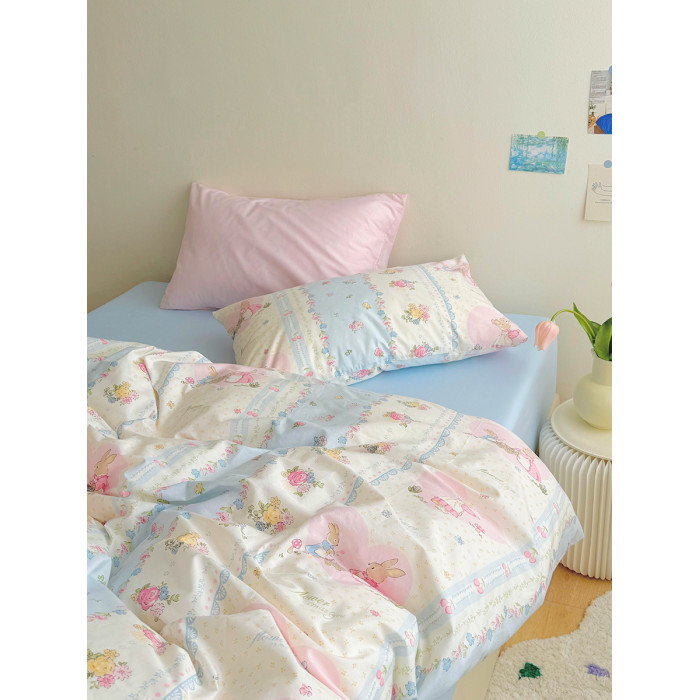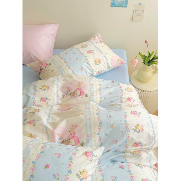 小清新復古田園花花兔純棉床上三四件套1.5m1.8m學生全棉被套單件