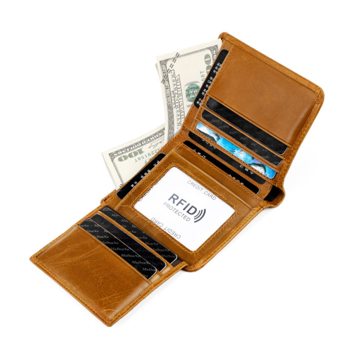 廣州市吹牛皮具廠RFID頭層牛皮男士錢包 防盜刷錢夾