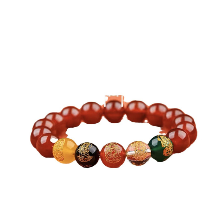 五路財神硃砂手鏈轉運珠手串本命年男女禮物開運飾品手飾手串