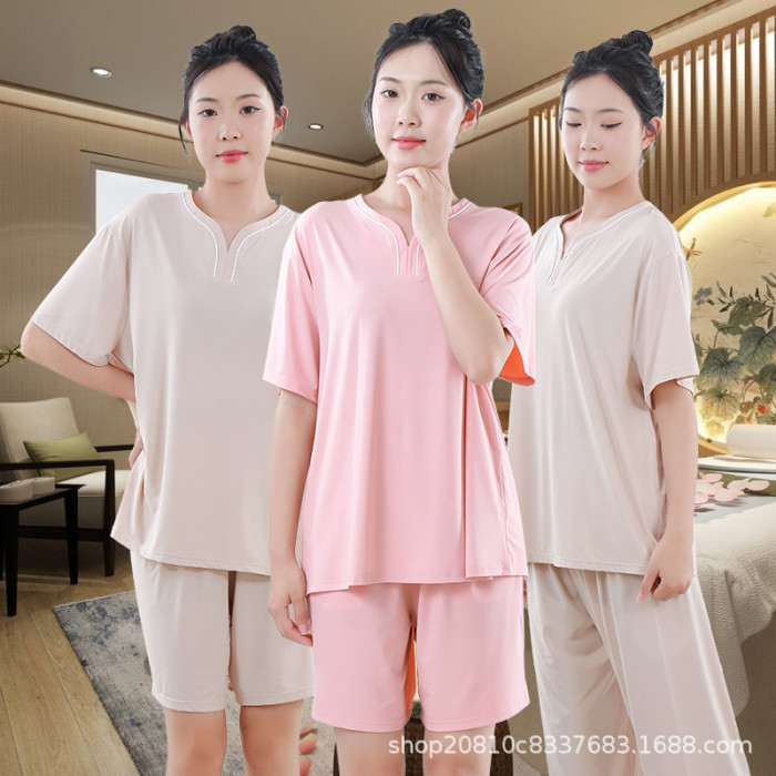汗蒸服男女款冰涼絲曲水浴服浴衣短款冰絲按摩水療足療服蘭亭睡衣