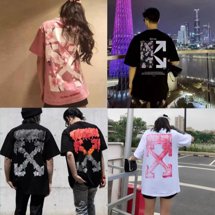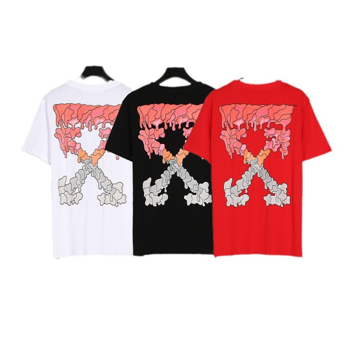 【歐碼】off經典款漸變箭頭溶解塗鴉警戒線ow潮牌宗教情侶短袖T恤