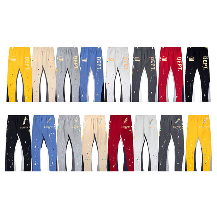 外單Gallery Dept手繪潑墨拼接抽繩高街休閒衛褲微喇長褲男士運動