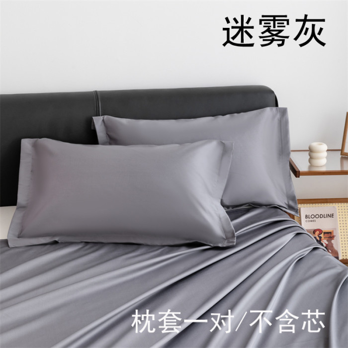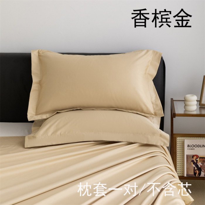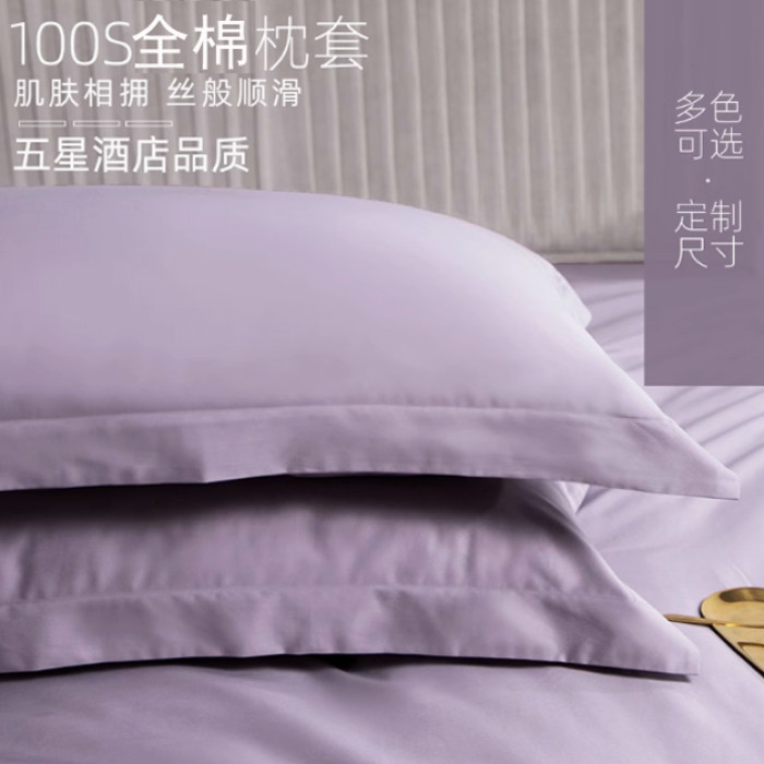 100支輕奢風純色雙股長絨棉貢緞48×74全棉寬邊純棉枕套一對裝