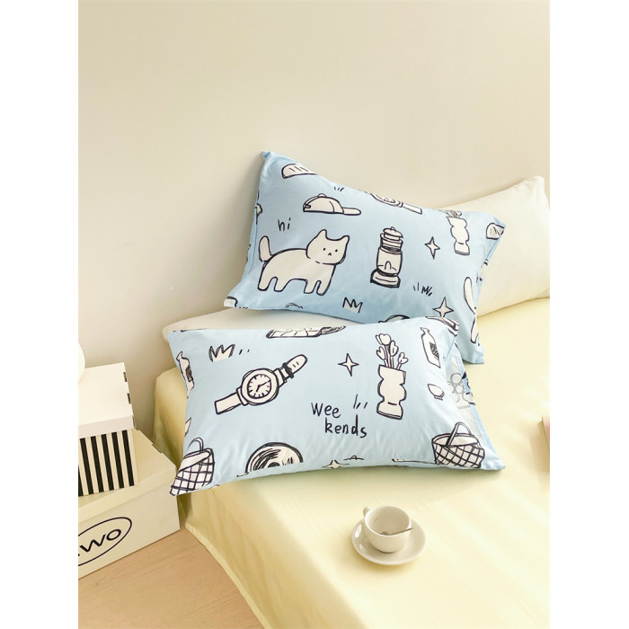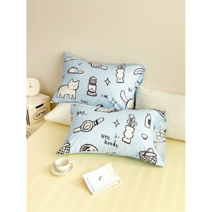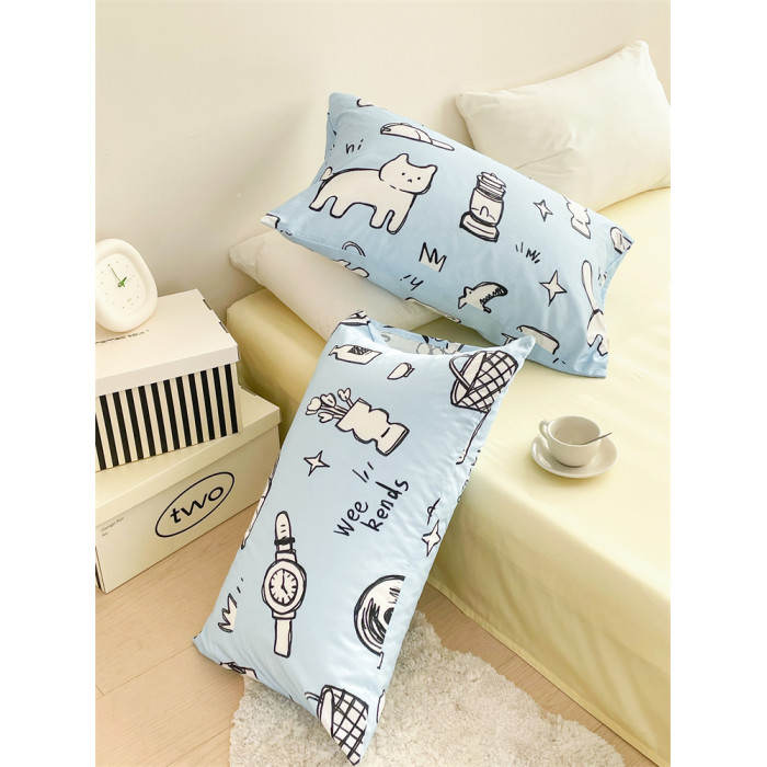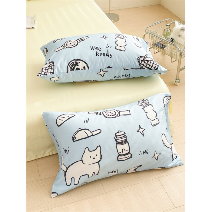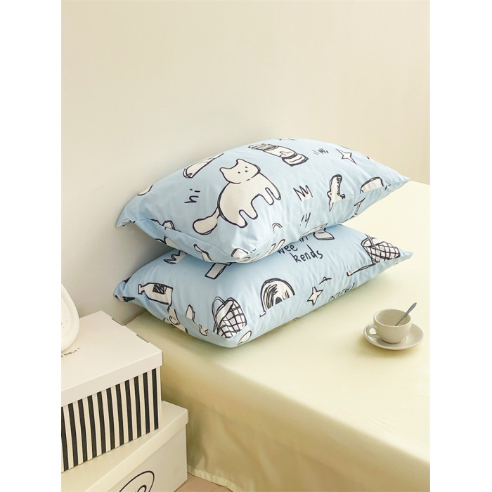 貓咪假期 趣味插畫設計原創60支長絨棉貢緞枕套全棉枕芯罩單衹裝