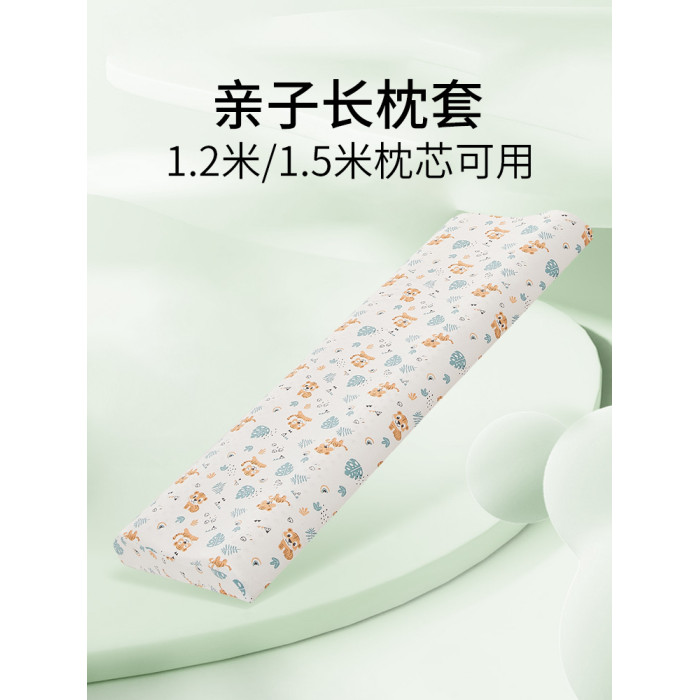 雙人長枕套1.2米1.5m兒童親子純棉乳膠枕套一家三口長款卡通親膚