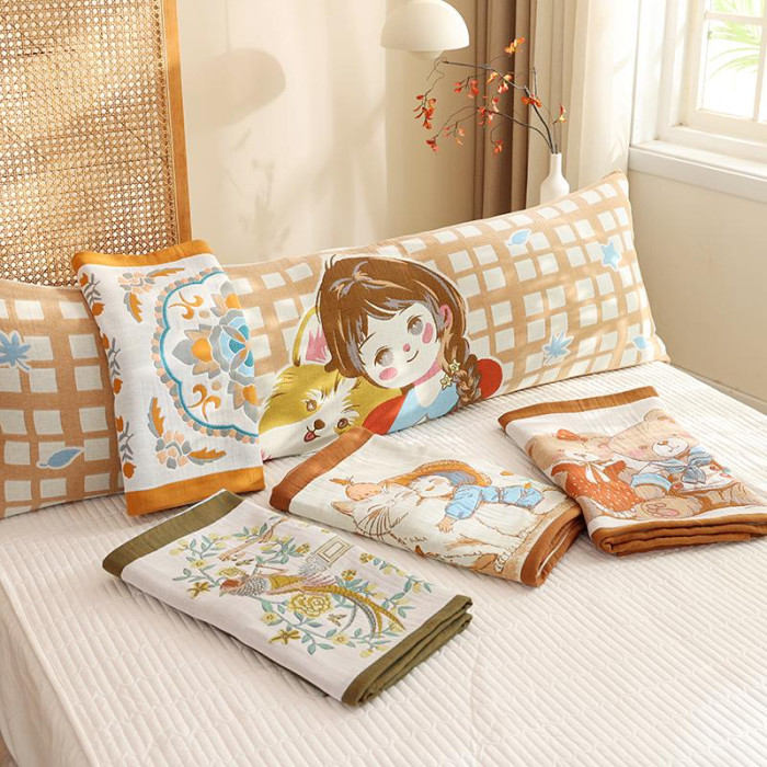 純棉四層紗布雙人枕套1.5m成人全棉厚長款枕頭套新款高檔長枕芯套