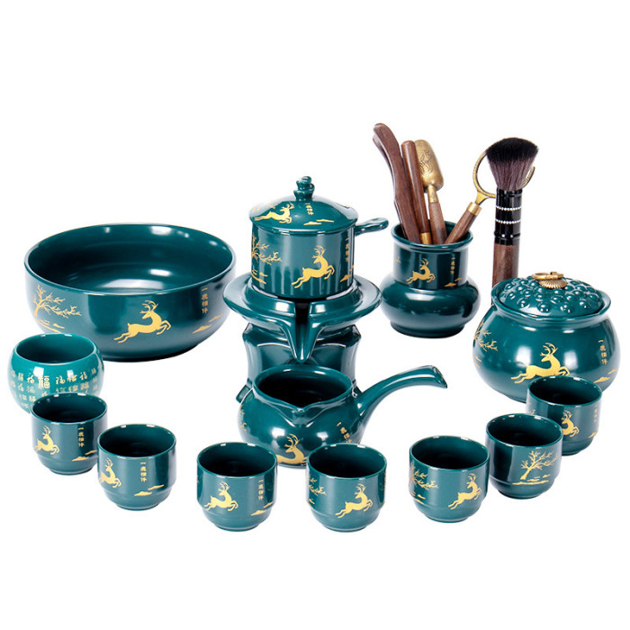 自動茶具套裝一鹿相伴家用客廳會客高檔陶瓷功夫茶壺杯懶人泡茶器