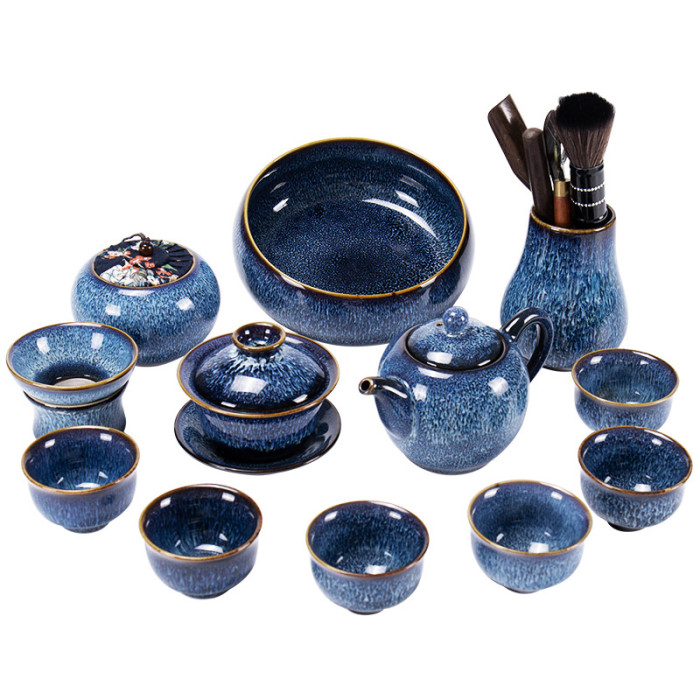 13頭窰變X天目釉蓋碗茶壺搭六君子茶葉罐