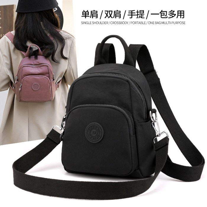 輕便休閒中年媽媽包可攜式簡約尼龍女後背包大容量多用途可雙肩斜後背包
