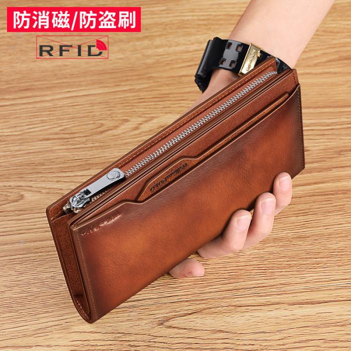 英皇保羅錢包男士長款真皮頭層牛皮復古錢包商務品牌男士卡包