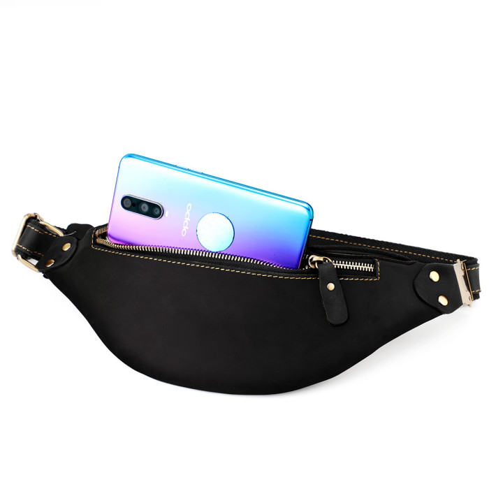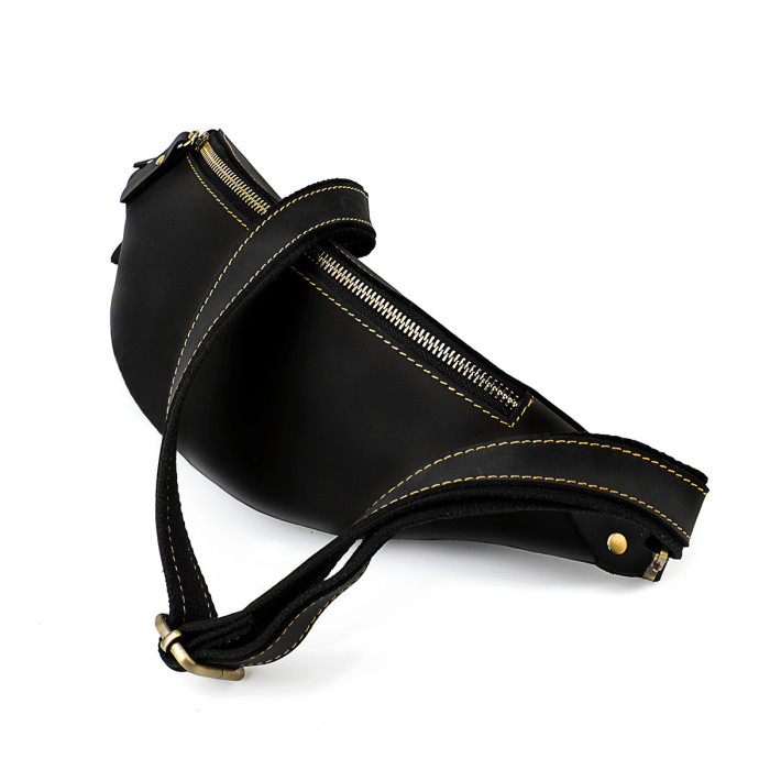 復古瘋馬牛皮男士腰包歐美潮流真皮男包