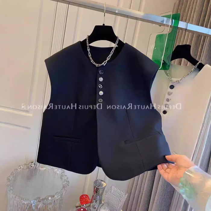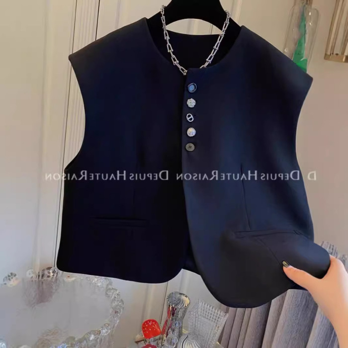 春秋女裝高級紐釦西裝馬甲春秋寬松設計感外套韓版馬夾無袖坎肩外