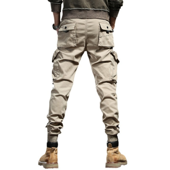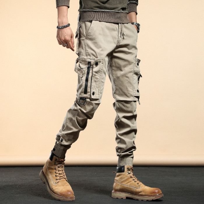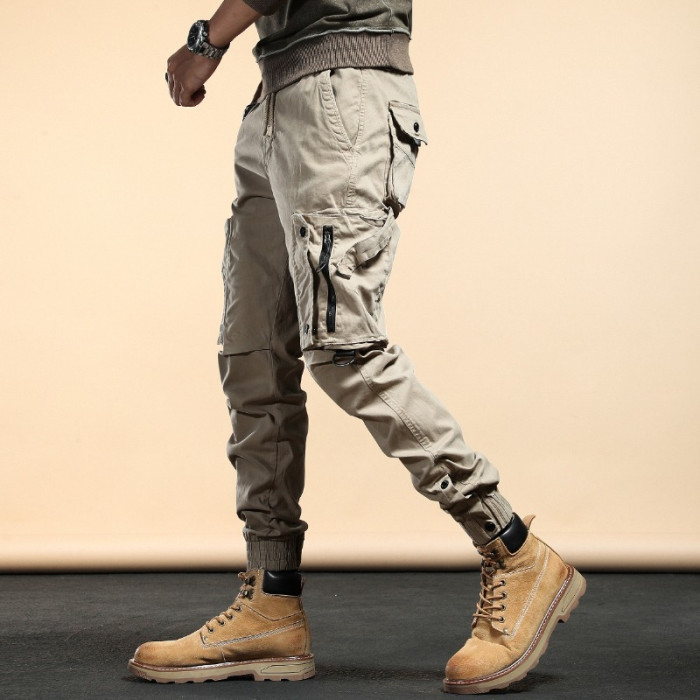 美式復古重磅多口袋工裝褲男潮牌寬松直筒束口褲濶腿休閒褲子