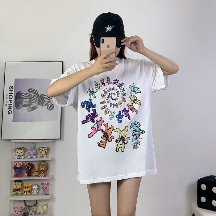 2024夏季新款歐美潮牌男女大碼寬松短袖圓領T恤復古百搭休閒半袖