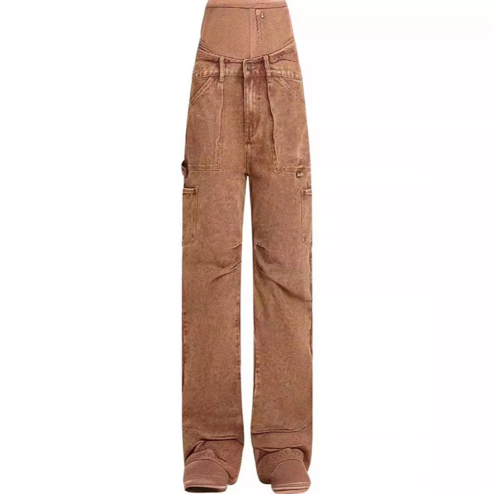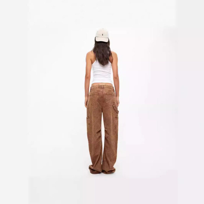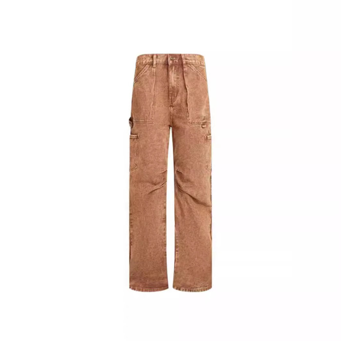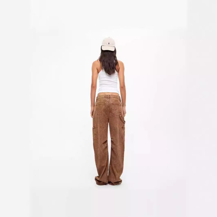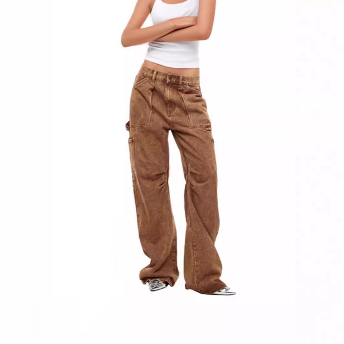 復古多口袋寬松休閒低腰工裝褲直筒牛仔褲