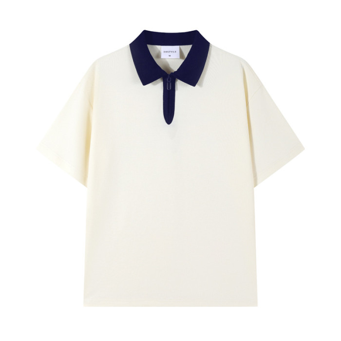 春夏新款230g珠地棉半拉鍊男士polo衫潮牌寬松撞色短袖保羅情侶衫