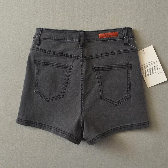 5535-20夏款 韓版高腰顯瘦顯腿長基礎課牛仔彈力短褲 熱褲
