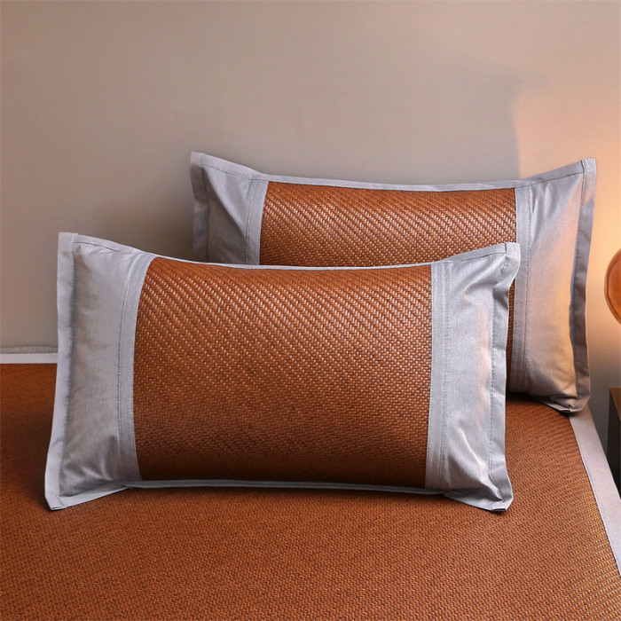咖色灰邊藤枕套一對