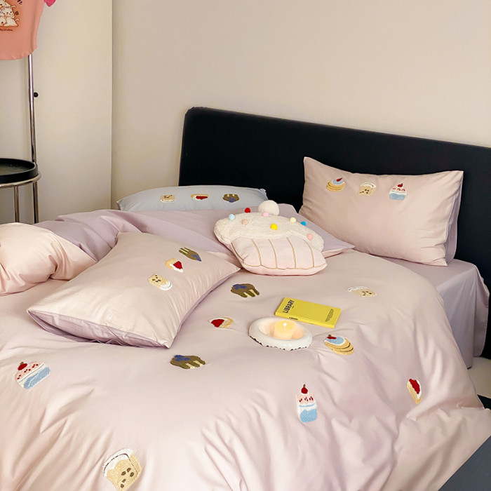 全棉毛巾綉200支長絨棉四件套純棉兒童被套單件1.2少女心床上用品