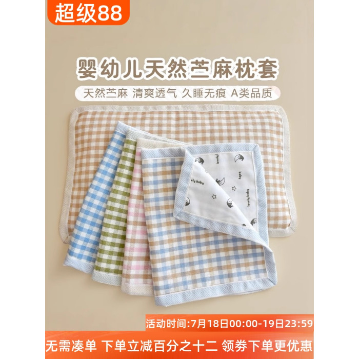 嬰兒夏季苧麻枕套兒童天絲涼感枕皮幼兒園寶寶抗菌防蟎乳膠枕頭套