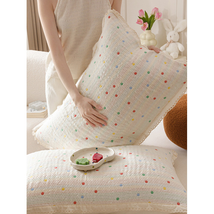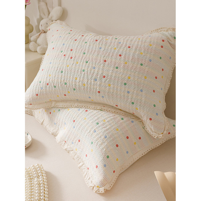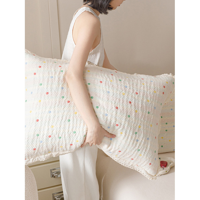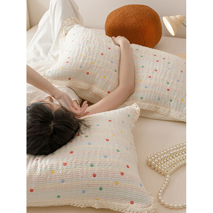 韓式全棉紗布色織提花枕套柔軟可噹枕巾純棉枕頭套一對裝2025新款
