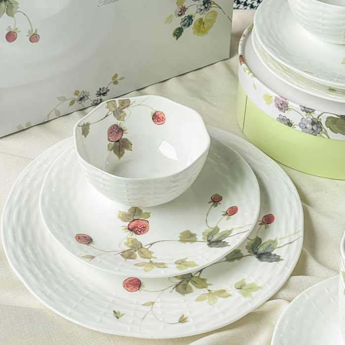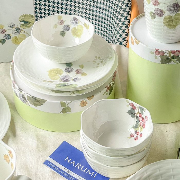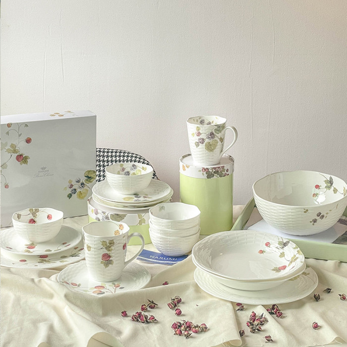 日式鳴海陶瓷餐具禮盒套裝露西花園骨瓷碗盤子高顔值咖啡杯碟
