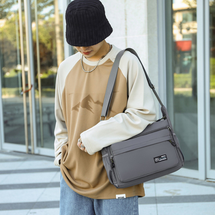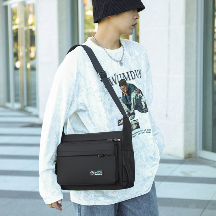 2022新款男士休閒單肩斜後背包大學生男款潮色時尚通勤上班斜後背包