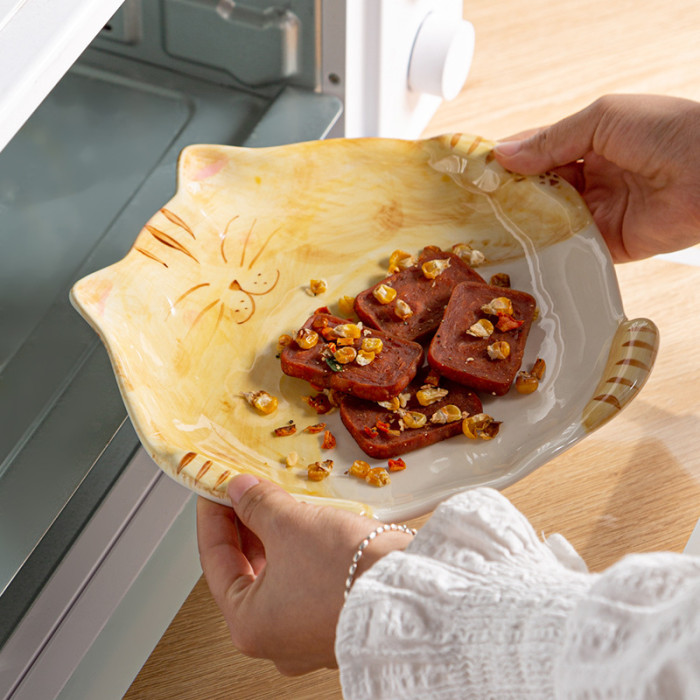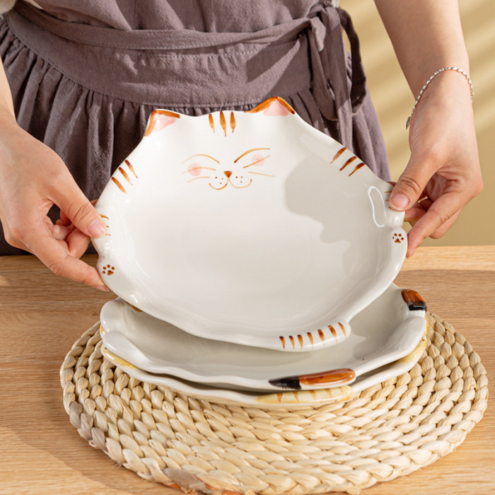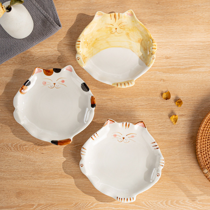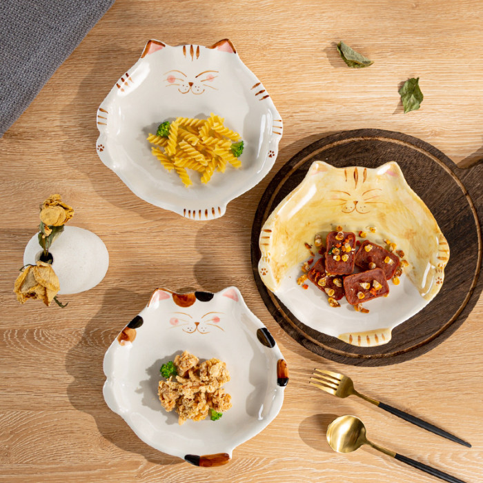 日式田園貓手繪陶瓷盤子可愛ins風釉下彩甜品盤意面盤早餐點心盤