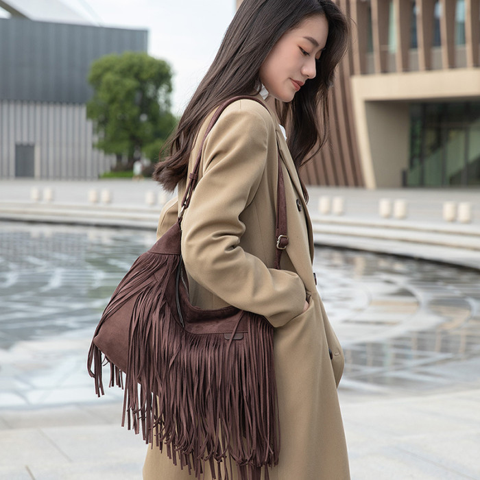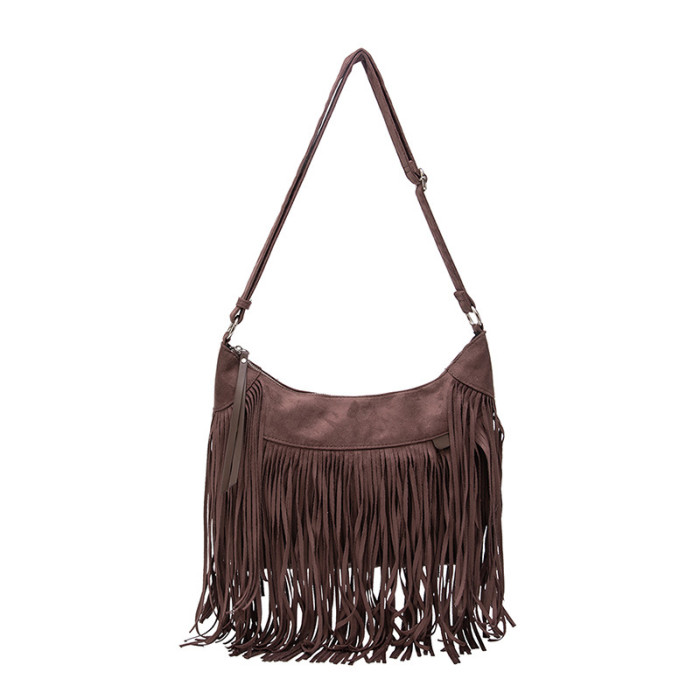 2024春季復古流蘇單肩包歐美個性潮流女包時尚百搭純色斜背餃子包