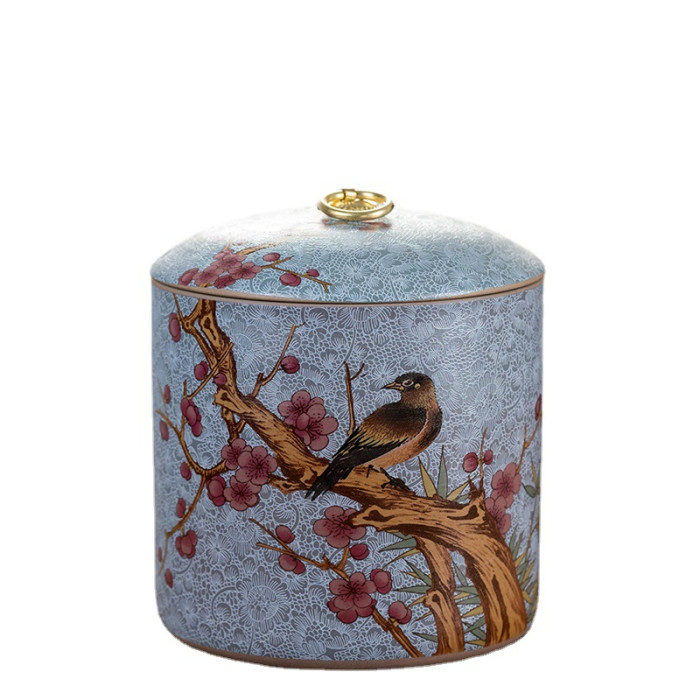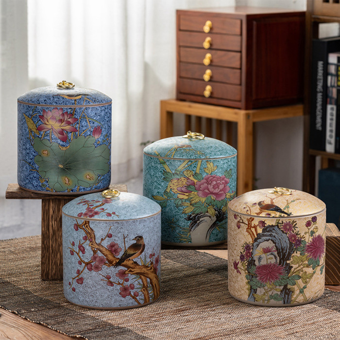 琺瑯彩陶瓷茶葉罐粗陶一斤密封罐大號紅茶儲茶罐容量500克可