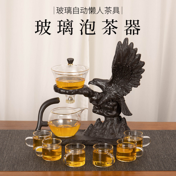 顔色 玻璃自動茶具大鵬展翅(暗紅)六盃(把手盃)
