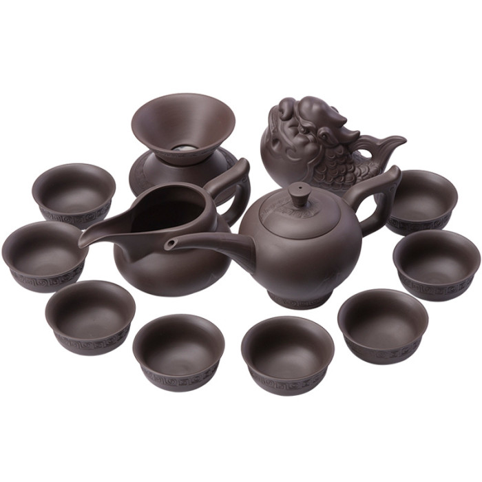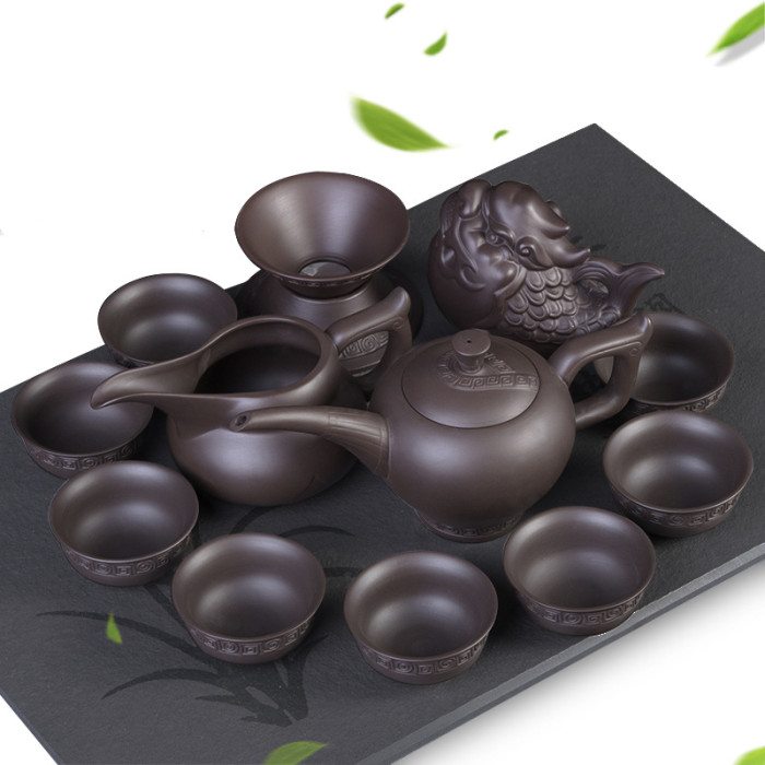 紫砂功夫茶具套裝家用陶瓷創意復古泡茶器紫泥茶壺茶杯整套