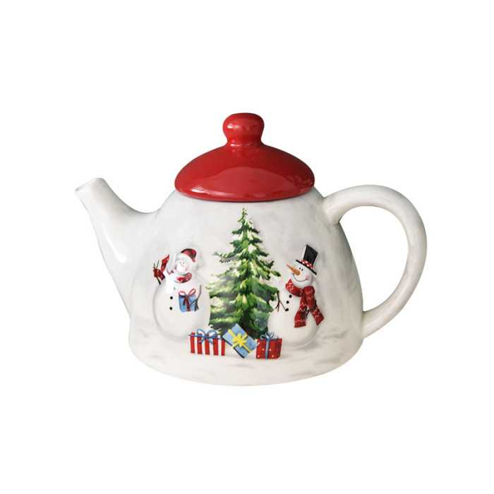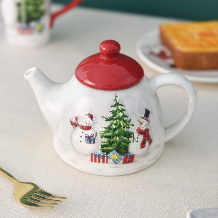 北歐鄕村聖誕雪人陶瓷茶壺下午茶水壺西式咖啡壺浮雕餐具