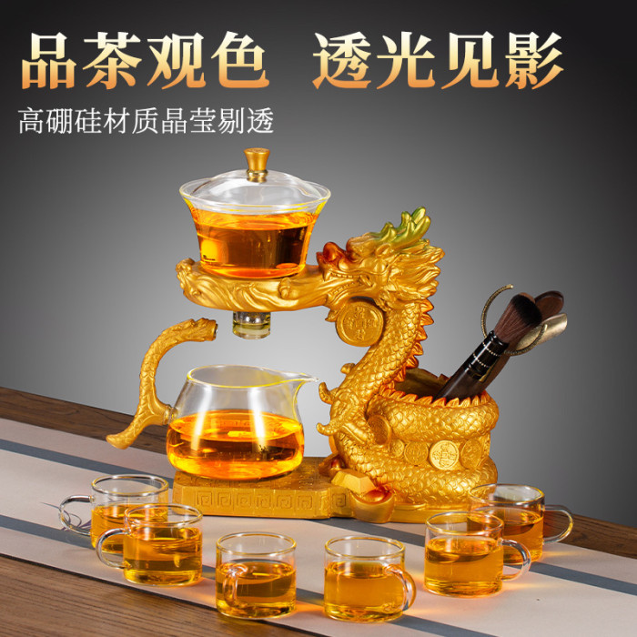 玻璃自動茶具磐龍6盃-搭茶磐(彩)