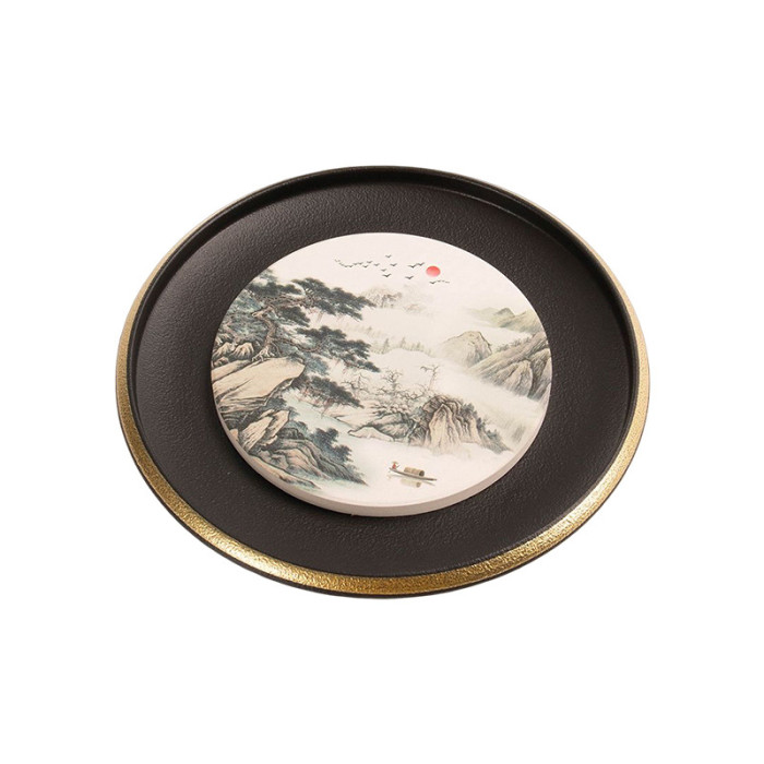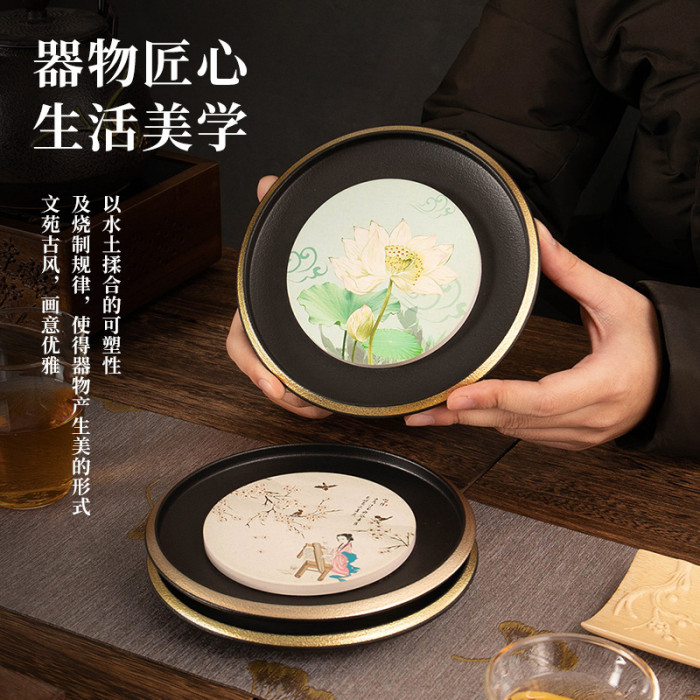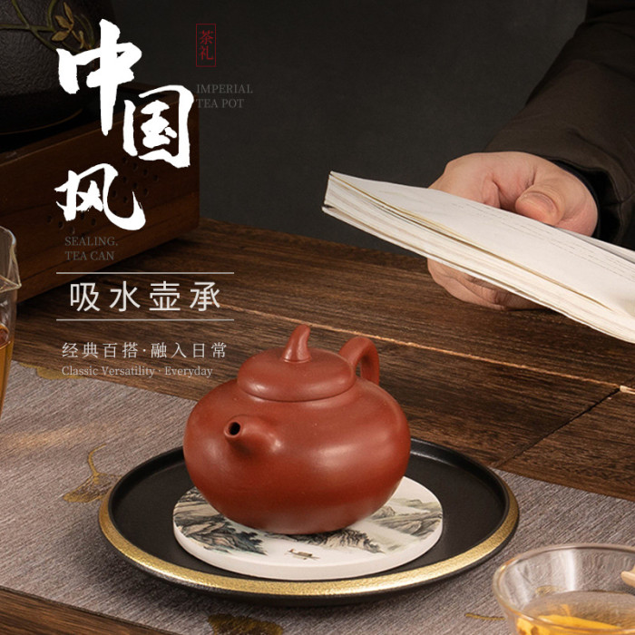 國潮吸水速乾茶盤陶瓷乾泡盤小號茶台家用壺承壺托盤功夫茶具配件