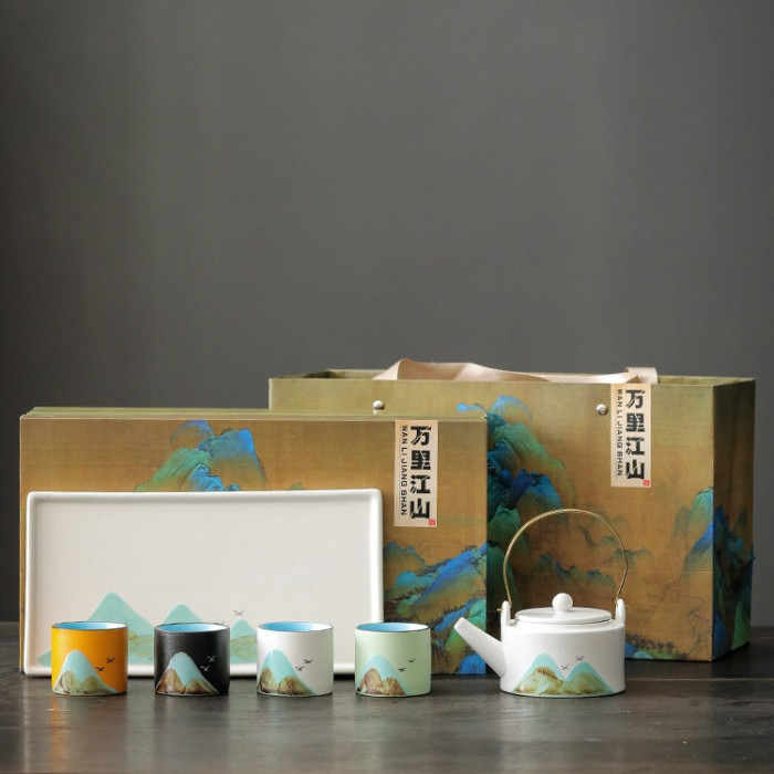 陶瓷功夫茶具套裝家用辦公手繪茶壺茶杯國潮風禮盒文創禮品