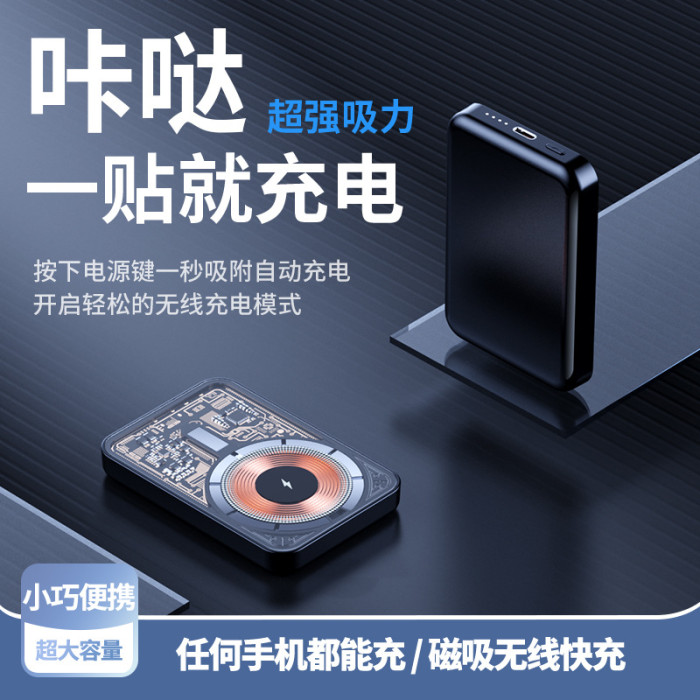 Magsafe無線快充透明磁吸手機充電寶小巧可攜式雙向行動電源