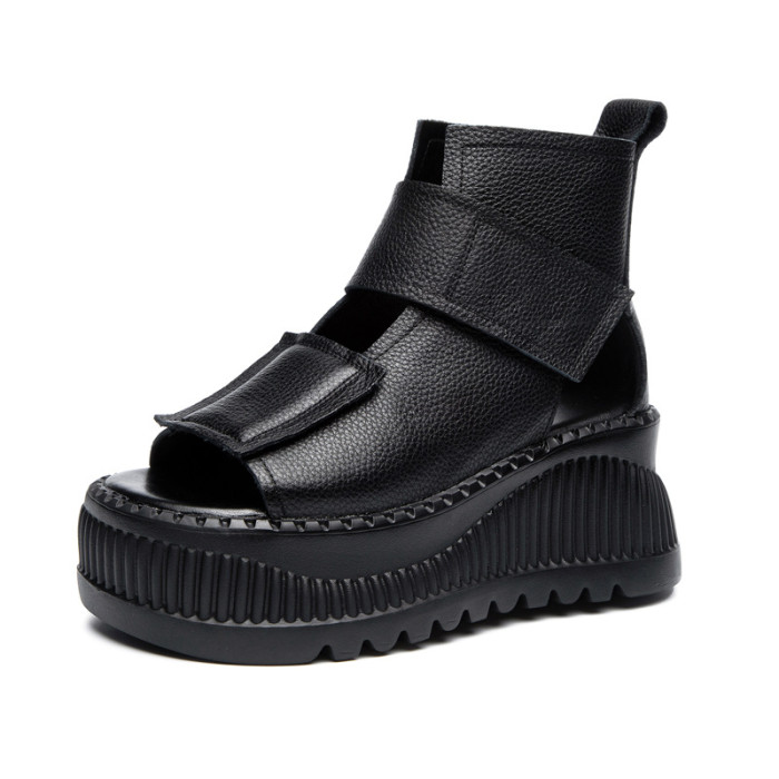 真皮羅馬涼鞋女外穿2025春夏新款小個子增高魚嘴女鞋女士厚底涼鞋
