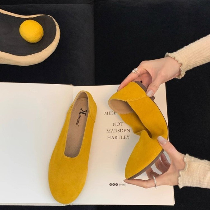 軟皮版復古圓頭一腳蹬平底單鞋女2025春款休閒博肯鞋軟底豆豆鞋