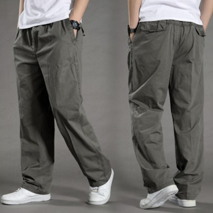 春秋薄款男式休閒褲加大工裝褲大碼寬松男長褲子爆款主推版松緊腰