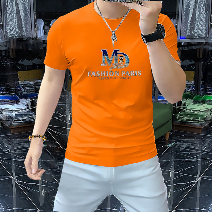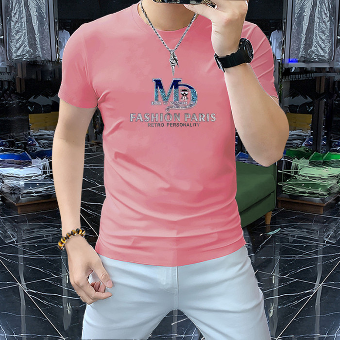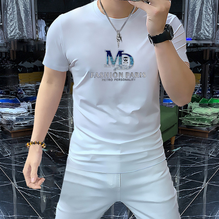 男士圓領短袖T恤時尚個性潮男上衣夏季現款歐潮男裝半袖套頭修身