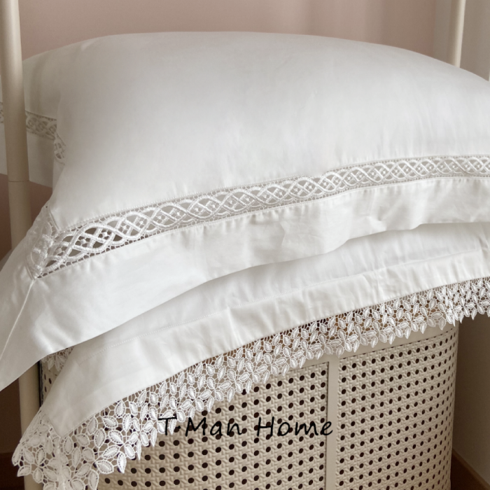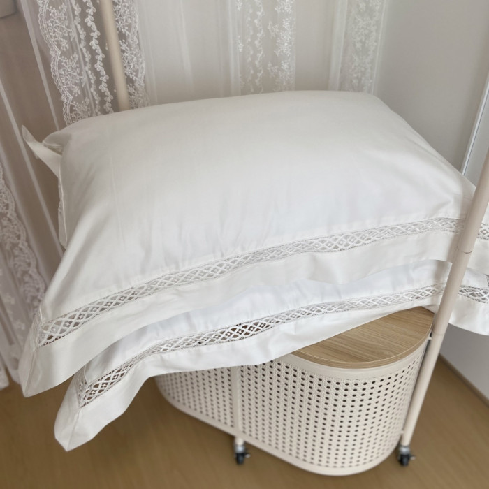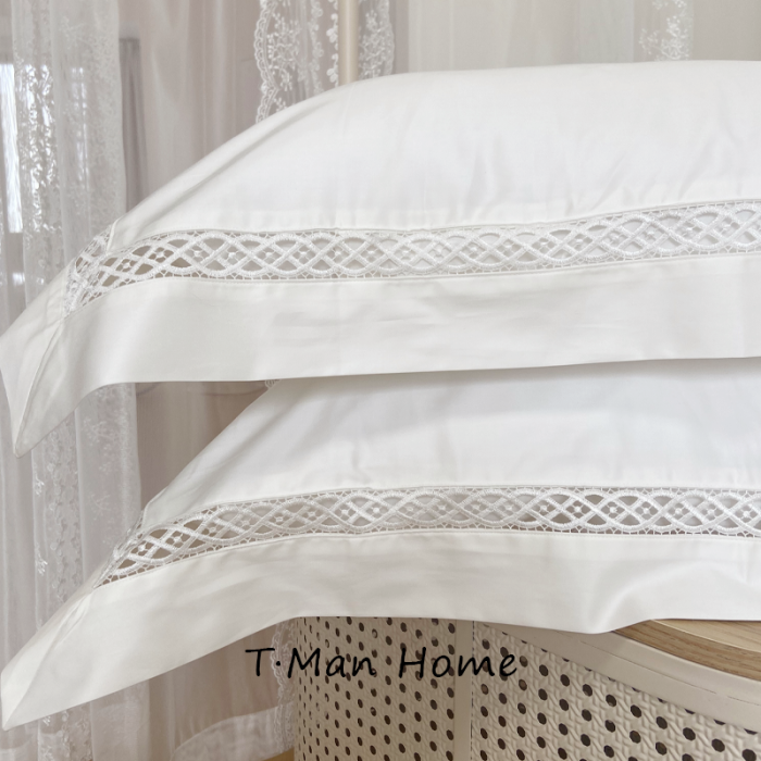純白色100支全棉枕套一對歐式鏤空花邊簡約大氣枕套子樣板間單人